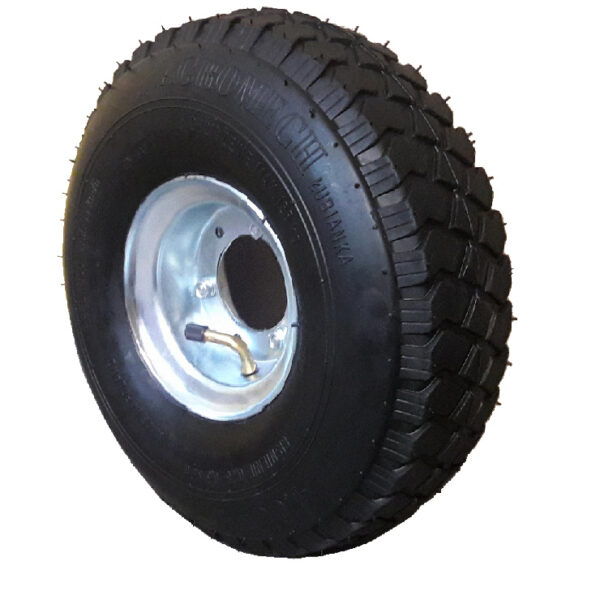 Koło 400×4 Junior w tej wersji to komplet: opona pneumatyczna, dętka oraz felga.
